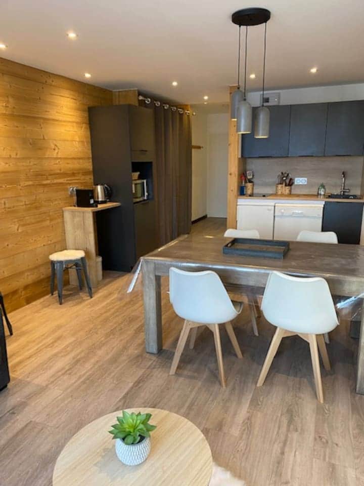 Situé à Tignes Val Claret au second étage de la résidence le Curling B Appartement 2 pièces pour 6 personnes - Entrée avec placard - Cuisine équipée (micro ondes, lave vaisselle, frigo, plaque vitro, machine nespresso) - Salle de douche - Une chambre avec 4 couchages (lits superposés) - Salon avec canapé convertible - Nombreux rangements - Balcon avec vue dur la Grande Motte - WC séparé - Casier à ski Ski aux pieds, remontée des Tufs à proximité immédiate, commerces et restaurants à 50 mètres. Au coeur du Val Claret, proximité des pistes, commerces, restaurants, parking et cinéma Les draps et serviettes inclus
